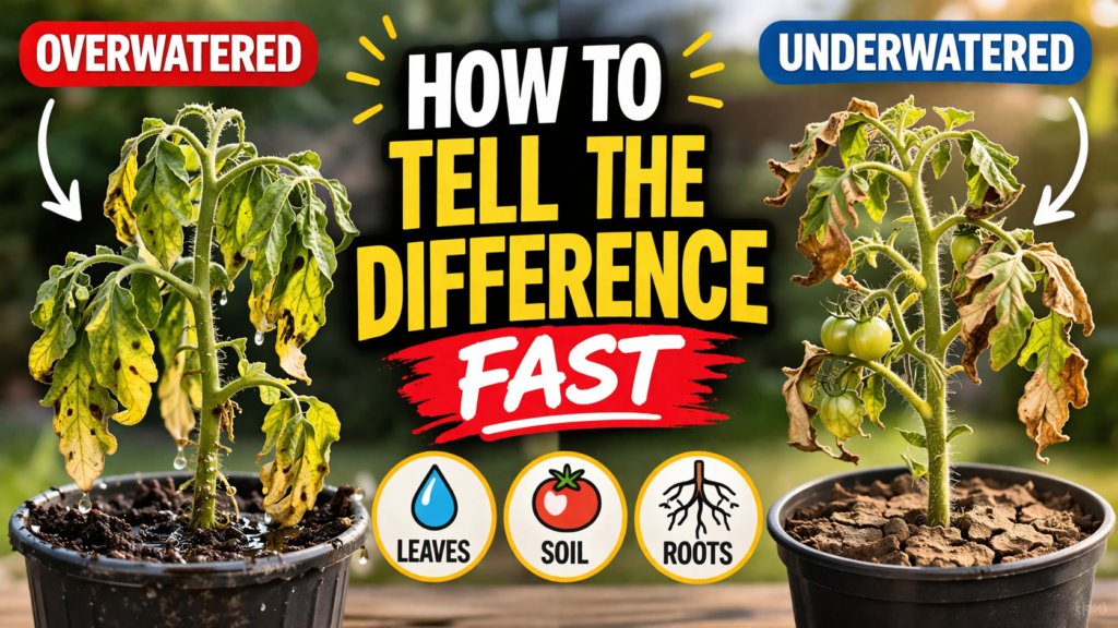 Both overwatering and underwatering make tomato plants wilt — but the fixes are opposite. Here is how to diagnose the problem in 30 seconds and what to do next.