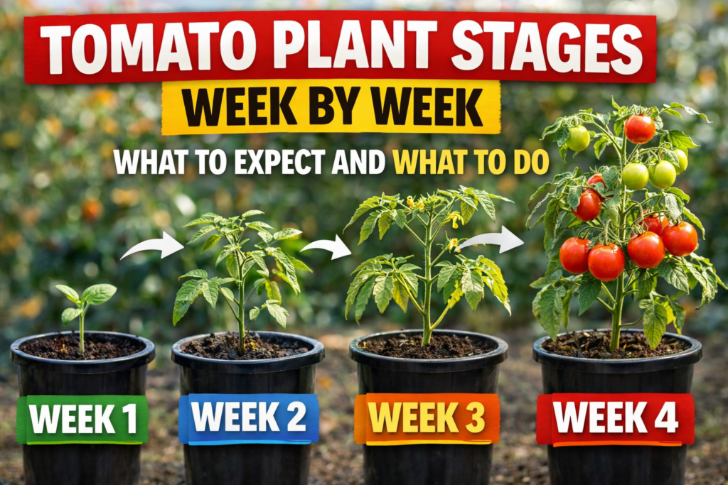 Every week of the tomato growing season looks different — and knowing what your plant is doing changes everything. Here is what to expect at each stage and exactly what to do.