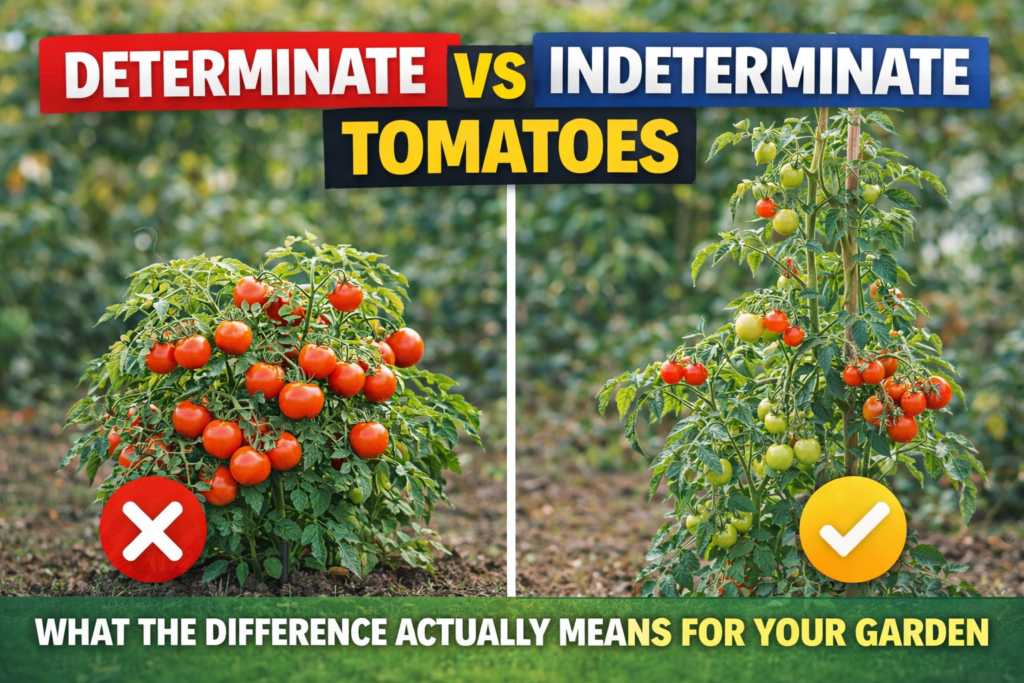 It is the most important thing on the plant tag and most gardeners never notice it. Here is what determinate and indeterminate actually means — and why it changes everything about how you grow.