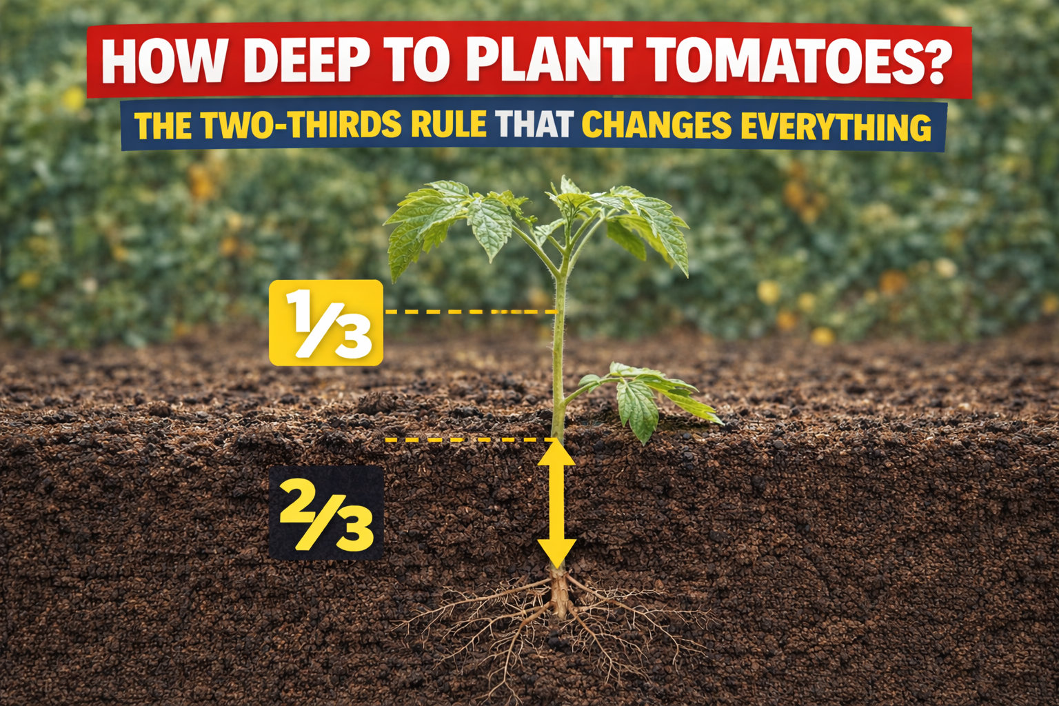 Most gardeners plant tomatoes too shallow and never know what they are missing. Here is the simple two-thirds rule that builds a stronger root system from day one — and why it works.