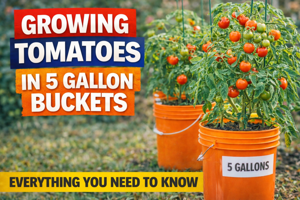 A 5 gallon bucket is one of the most underrated tomato containers available. Here is the complete setup guide — varieties, soil, watering, feeding, and the mistakes that kill bucket tomatoes fast.